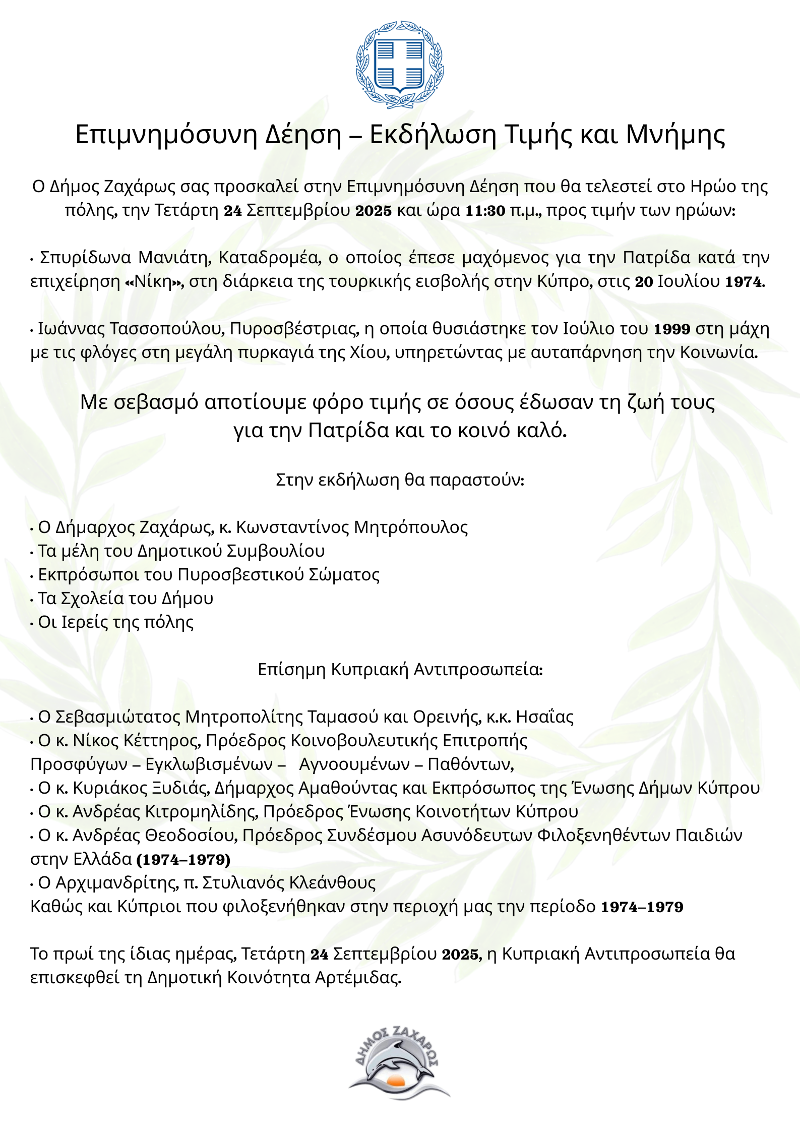 - Ο Δήμος Ζαχάρως Γυρίζει Σελίδα: Εγκρίθηκε η Στρατηγική Ολοκληρωμένη Χωρική Επένδ... 26/6/2025