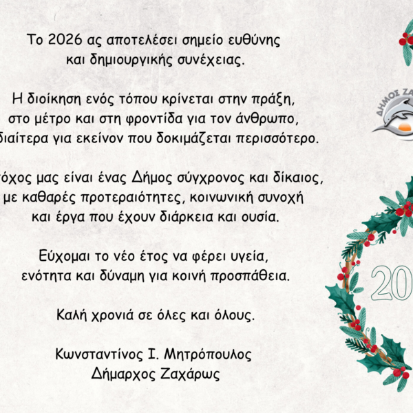 Πρωτοχρονιάτικη ευχή Δημάρχου Ζαχάρως