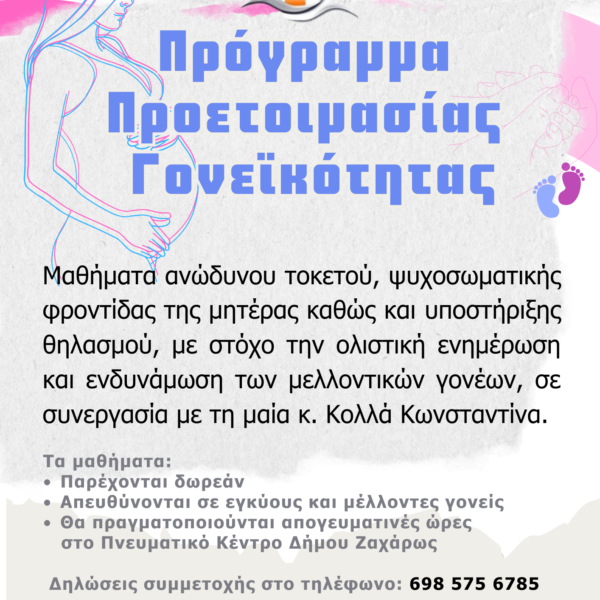 Έναρξη Προγράμματος Προετοιμασίας Γονεϊκότητας από τον Δήμο Ζαχάρως