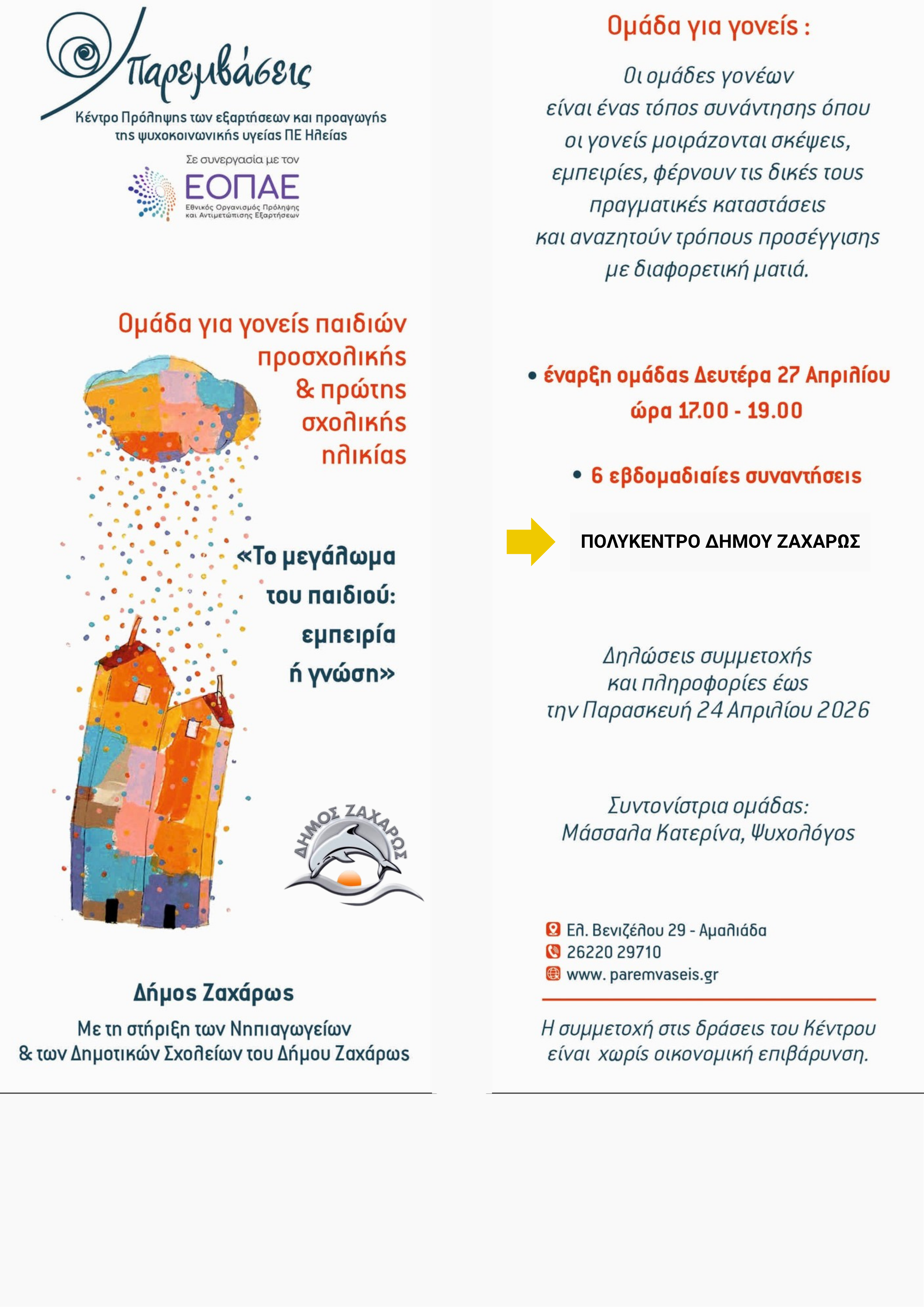 Η δράση πραγματοποιείται με τη στήριξη του Δήμου Ζαχάρως, του Κέντρου Κοινότητας, του προγράμματος «Βοήθεια στο Σπίτι», του ΚΗΦΗ, καθώς και των Ποδηλατών Ζαχάρως.