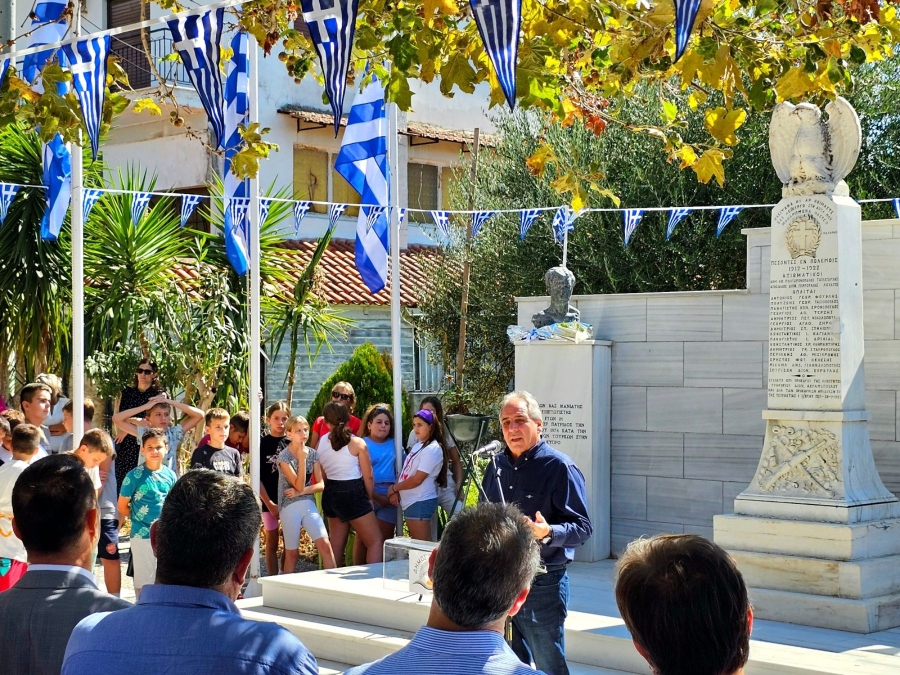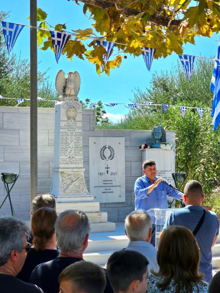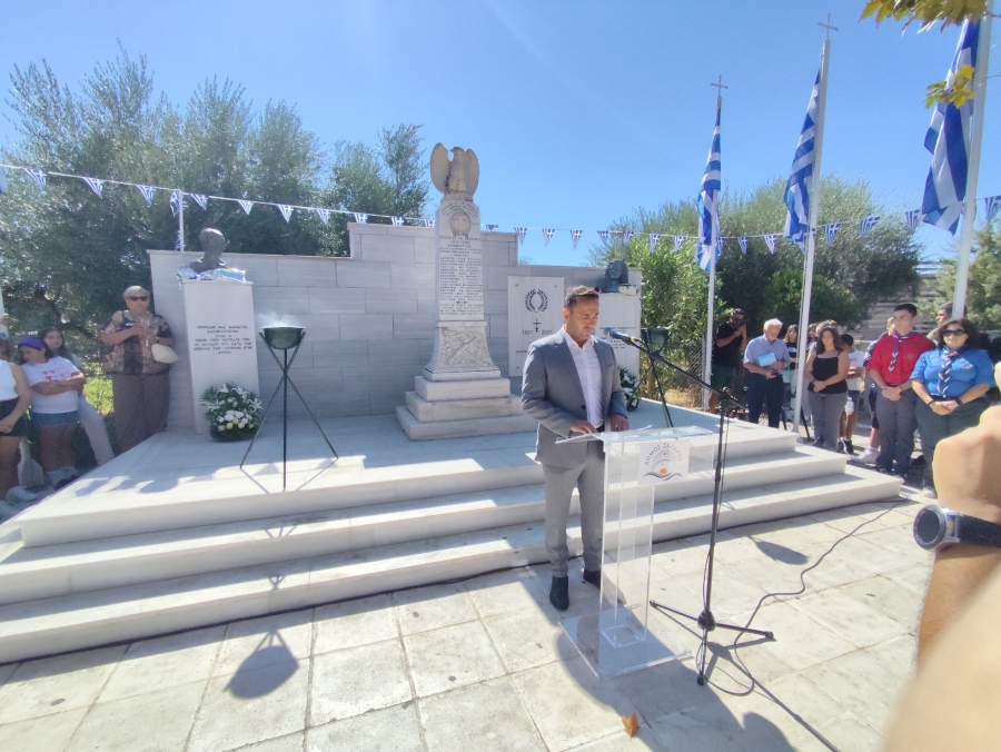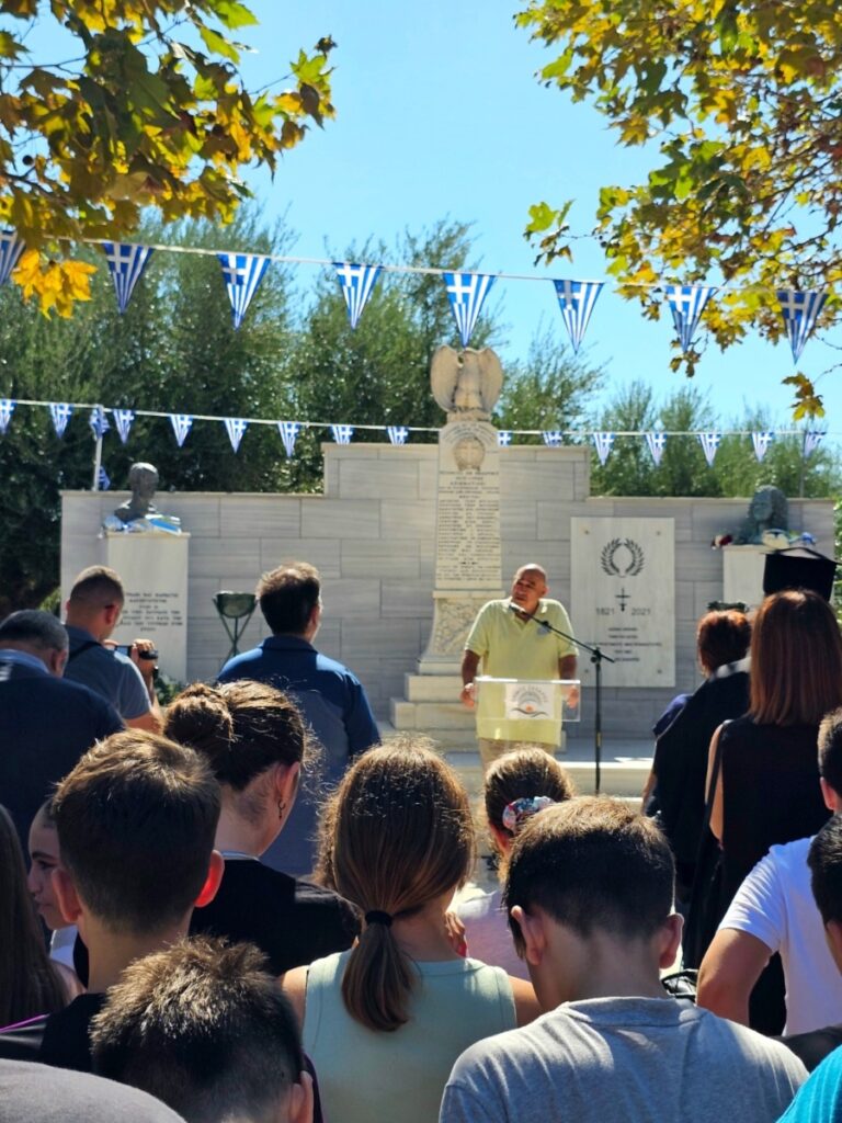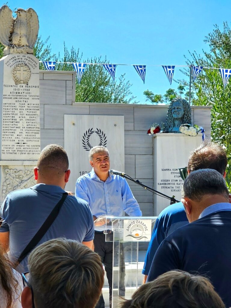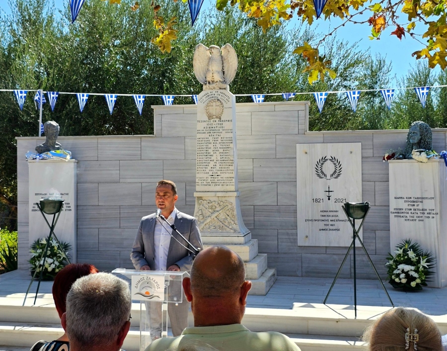 «Σήμερα τιμούμε δύο παιδιά της Ζαχάρως που έγιναν σύμβολα θυσίας και αυταπάρνησης: τον Σπύρο Μανιάτη και την Ιωάννα Τασσοπούλου. Ο πρώτος έπεσε για την ελευθερία της Κύπρου, η δεύτερη για την προστασία του συνανθρώπου.Το παράδειγμά τους μας διδάσκει ότι ο πατριωτισμός και η γενναιότητα έχουν έναν κοινό πυρήνα: να θέτεις το “εμείς” πάνω από το “εγώ”. Η μνήμη τους είναι χρέος και τιμή για όλους μας».