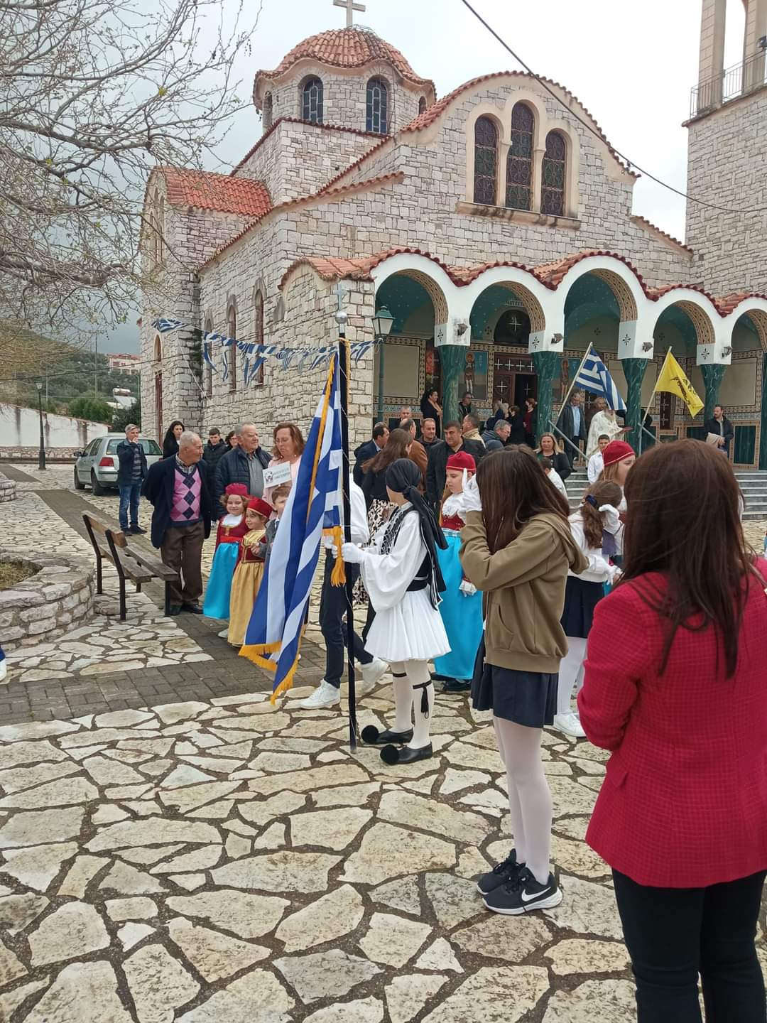 Μετά τη δοξολογία, εκφωνήθηκαν οι πανηγυρικοί της ημέρας εντός των Ιερών Ναών από μαθητές και εκπαιδευτικούς.