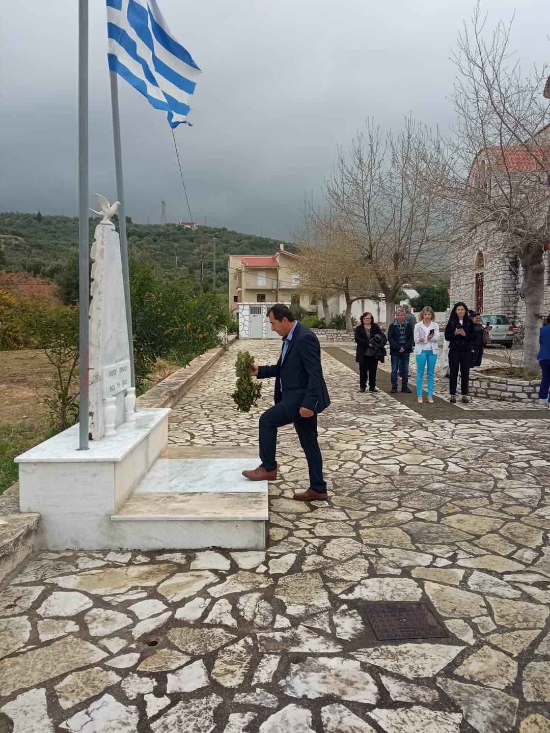 Ακολούθησε η κατάθεση στεφάνων στα Μνημείο Ηρώων και η τήρηση ενός λεπτού σιγής στη μνήμη των πεσόντων του 1821.