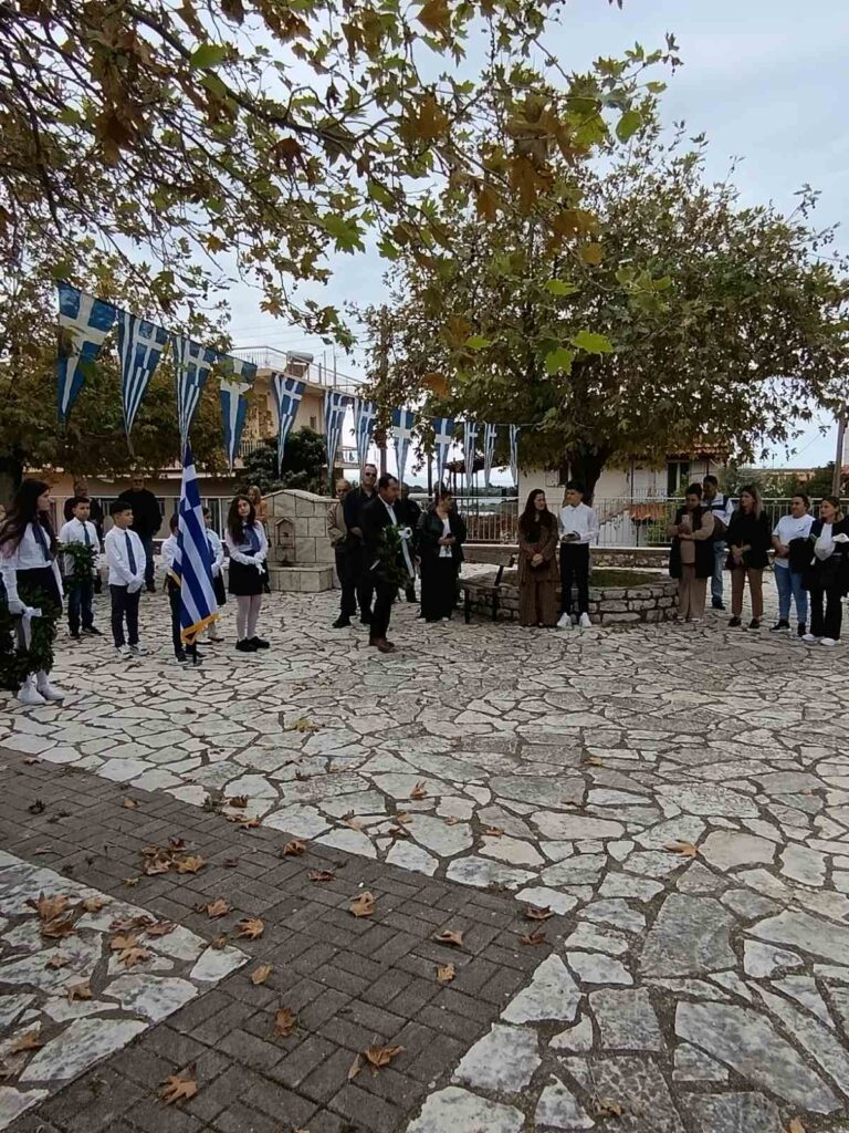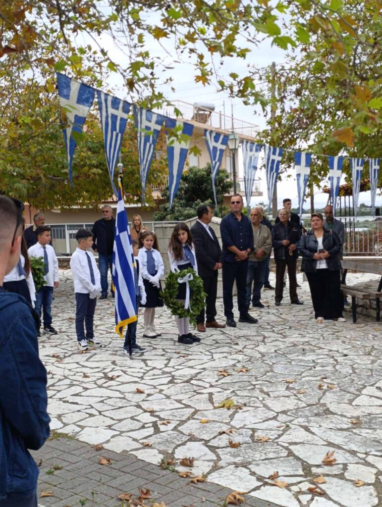 Ακολούθησε η τελετή κατάθεσης στεφάνων στα Μνημεία Ηρώων κάθε Δημοτικής Κοινότητας, όπου εκπρόσωποι φορέων, σχολείων και συλλόγων απέδωσαν τιμές στους πεσόντες του 1940. Στη συνέχεια τηρήθηκε ενός λεπτού σιγή στη μνήμη όσων αγωνίστηκαν και θυσιάστηκαν για την Πατρίδα, ενώ η τελετή κορυφώθηκε με την ανάκρουση του Εθνικού Ύμνου, δημιουργώντας μια συγκινητική και περήφανη ατμόσφαιρα.