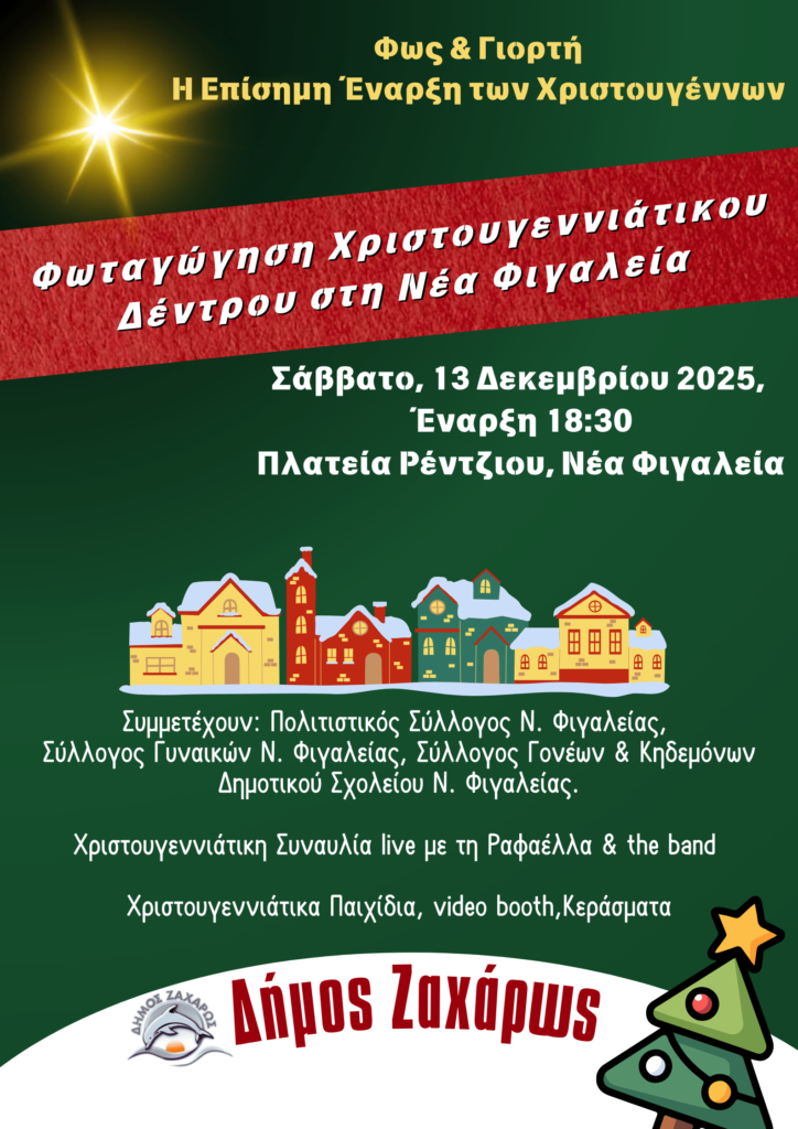 Ο Δήμος Ζαχάρως καλωσορίζει την εορταστική περίοδο με δύο τελετές φωταγώγησης που φιλοδοξούν να μετατρέψουν τη Ζαχάρω και τη Νέα Φιγαλεία σε χώρους σύγχρονης γιορτής, συλλογικότητας και πολιτισμού. Με μουσικές εμφανίσεις, συμμετοχή τοπικών φορέων και δράσεις που απευθύνονται σε όλες τις ηλικίες, ο Δήμος επιδιώκει να προσφέρει μια εμπειρία όπου το φως λειτουργεί ως σύμβολο ενότητας, αισιοδοξίας και συνέχειας της τοπικής παράδοσης.